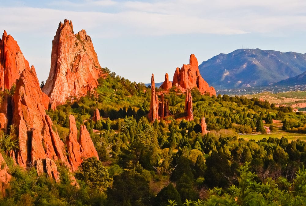Garden of the Gods is located in Colorado Springs. It is a 1,300-acre public park full of sandstone formations. There are plenty of activities to do in the park and there is no fee to enter!