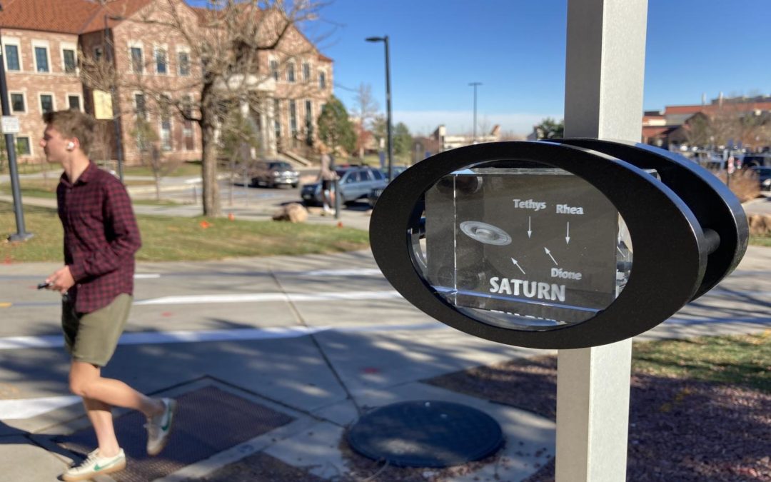 Just as a CU Boulder graduate student, Jeffrey Bennett, had led the development of the original model solar system another graduate student, James Negus, motivated the update. While teaching an introductory astronomy lab, Negus noticed that the existing model showed cracking from weathering and vehicle collisions throughout the years. He also observed that the exhibit still listed Pluto as a planet! So, in 2018, he began a campaign with the help of Fiske Planetarium director John Keller, the University’s Sommers Bausch Observatory director Seth Hornstein, and Bennett to upgrade the original model to a system with upgraded graphics and scientific content.