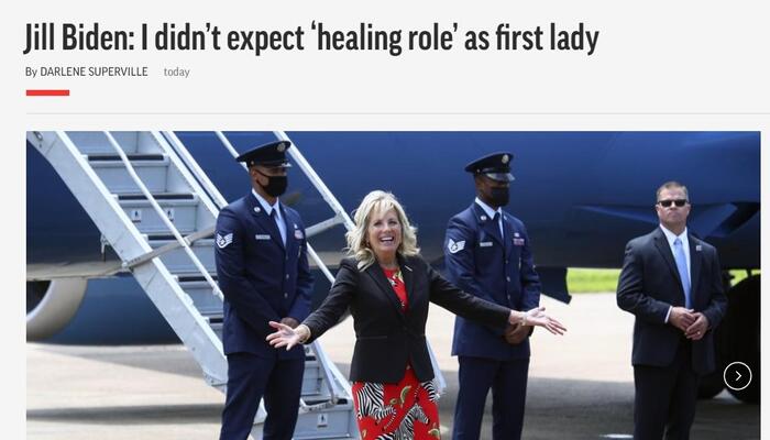 There’s no space here to write anything negative or critical, like how Jill Biden was expected to lead an effort to reunite separated illegal-immigrant families, but then she wasn’t. Superville was stuck in “comforter-in-chief” PR mode: