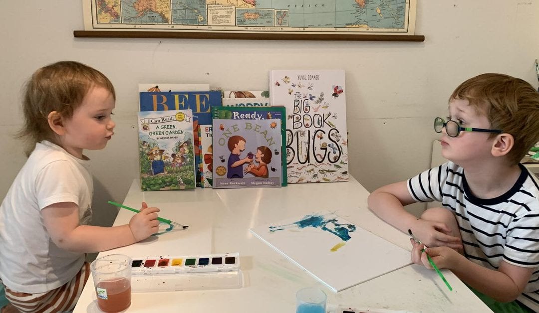 Five-year-old Logan Walker, right, and his 3-year-old sister, Sojourner, paint together in a makeshift classroom at their Boulder home. | Courtesy of Lindsey Walker