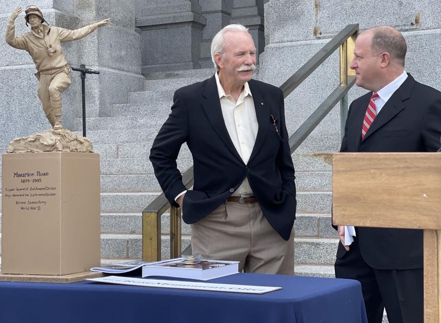 “Today is another step in the journey of honoring one of our state’s, our country’s, finest,” Polis said from the west steps of the Capitol, overlooking the site where the statue will be placed. “The life of General Maurice Rose, truly one for the ages.”