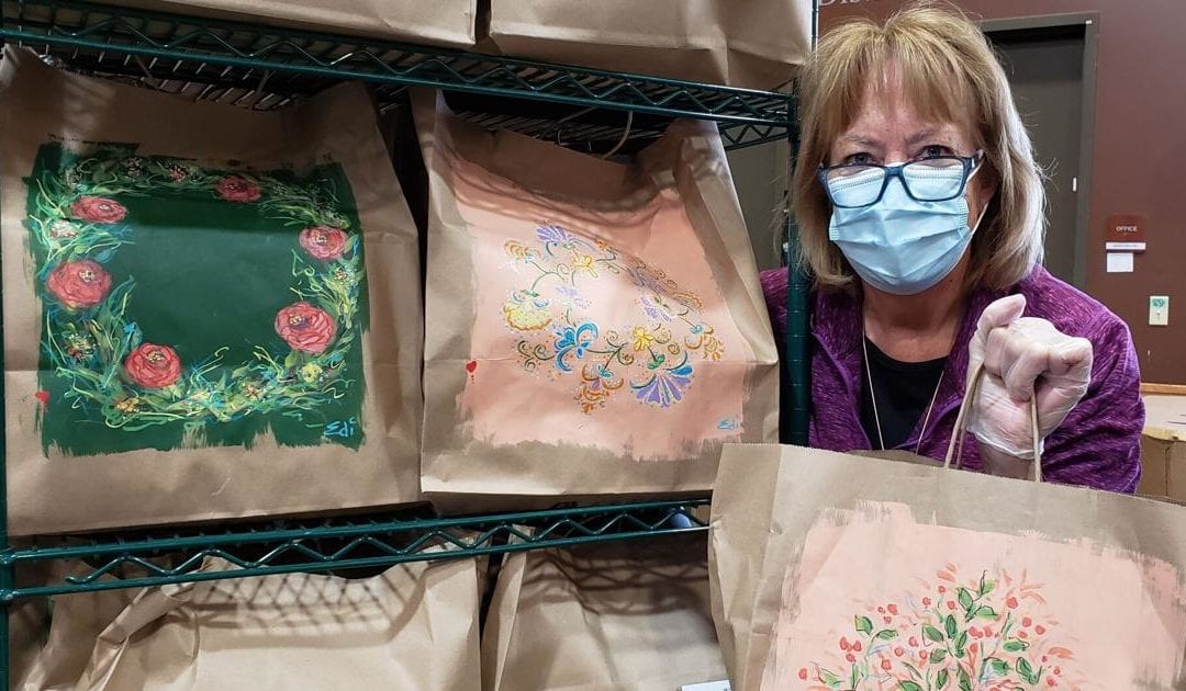 “So we had the bags come in and it was fun because I got to see, when I did the distribution on a Saturday, some of the bags that were decorated here going out with food in them,” McBride said “So that was full circle.”