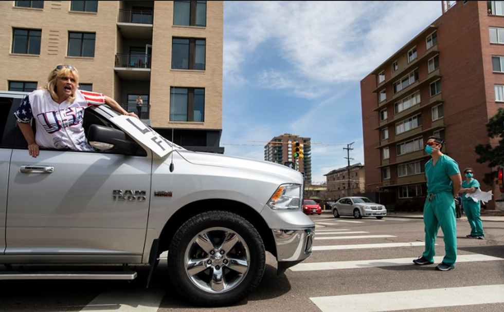 Now healthcare workers, the group that would most suffer from a premature end to social distancing, are mounting counter-protests of their own.