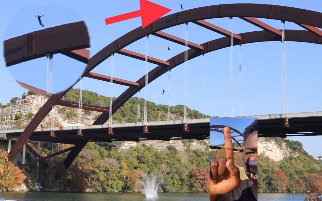 A ‘not so bright’ Youtuber (Saa Fomba) created a now viral video showing him jumping from the top of the arch of the Pennybacker bridge into the Colorado River below.
